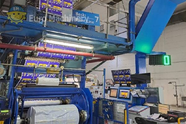 CERUTTI RB 908 Rotationstiefdruckmaschine ermöglicht den Druck von 10 Farben auf PE, PP, OPP, PET und Papier, Druckbreite 1180 mm Rotationstiefdruckmaschine, die im Bereich des flexiblen Verpackungs- und Foliendrucks zur Herstellung von mehrfarbigen, hochauflösenden Drucksachen eingesetzt wird. Hersteller: Cerutti BOBST Modell: RB 908 M4 Anzahl der Farben: 10 Farben Zu bedruckendes Material: PE, PP, OPP, PET, Papier Druckbreite: 1180 mm Breite des Materials: 1200 mm Min. Bahnbreite: 700 mm Max. Durchmesser der Rolle: 800 mm Max. Gewicht der Rolle: 1000 kg Mechanische Geschwindigkeit: bis zu 300 m/min Anzahl der Trockner: 13 + vor dem Trockner Zubehör:- Elektrostatische Entladung (Eltex)
