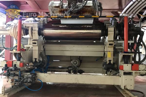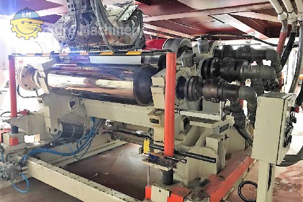 Die ER WE PA Sheet Co-Extrusionsanlage ist ein aseptisches Extrusionsbeschichtungssystem zur Verarbeitung von PP, EVOH, das Plattenbreiten von 300 mm bis 900 mm mit einer Dicke von 400 Mikron bis 2 mm verarbeiten kann. Marke: ER WE PA Blattbreite min-max: 300mm -900mm Materialien: PP, EVOH Minimale und maximale Materialstärke: 400 Mikrometer bis 2 mm Dosiersystem: Einzelne Komponente Anzahl von Extrudern: 4 Bildschirmwechsler: ja Schmelzepumpe oder Zahnradpumpe: Schmelzepumpe Zuführungsblock: 7 Schichten 2 Satz, kann 3-5-7 Schichten verarbeiten Schneidkopf: 2 Sätze 1-1000mm 2-400mm Kalander-Durchmesser: 500mm x3 Anzahl der Rollen: 3 Position der Rolle: Jede Position möglich Kühlung: 2 Satz Typ der Aufwickelvorrichtung: 2 Stück einzelnes Set Der Co-Extruder ist in gutem Zustand und kann in der Produktion besichtigt werden. Bitte kontaktieren Sie uns für weitere Informationen oder um einen Besichtigungstermin zu vereinbaren.- Ich möchte den Preis für diese Maschine wissen