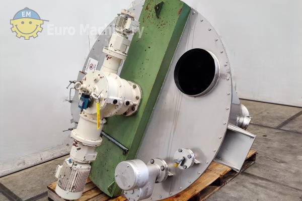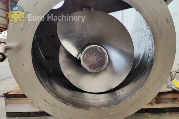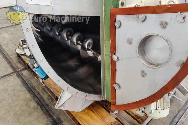 Konusmischer aus Edelstahl HOSOKAWA NAUTA DBXE-1000 R mit 1000 L Fassungsvermögen, Antrieb von oben, Entleerung von unten und Klumpenbrecheranschluss; in gutem Zustand. Marke & Modell: HOSOKAWA NAUTA DBXE-1000 R Beschreibung:- Material: Rostfreier Stahl