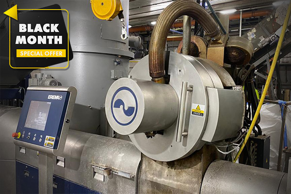 Kunststoffgranuliermaschine INTAREMA 1108 TVEplus mit Doppelentgasung und Laser-Durchlauffilter. Recyclinganlage Intarema zur Verarbeitung von PE, PP und Schneckendurchmesser 80 mm, Leistung bis zu 450 Kg/h. Marke und Modell: EREMA Intarema 1108 TVEplus LF Material, das verarbeitet werden kann: PE, PP Schneckendurchmesser: 80 mm Leistung: Bis zu 450 kg/h, abhängig von der Art des Materials und der Förderleistung. Entgasung: Doppelt Siebwechsler vor der Entgasung: Perforierter Endlosfilter aus Laserfolie System der Materialzuführung: Förderband mit Metalldetektor Extruder Trichter Typ: Agglomerator/Schneidverdichter – Extruderkombination Pelletiersystem: Heißgranulierung auf Matrize – Wasserkreislaufsystem Macht:- Spannung: 3×400 VAC + PE