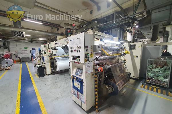 Nordmeccanica Simplex Kaschiermaschine für flexible Verpackungen, Film/Folie und Film/Folie Kaschierung. Kaschiermaschine mit lösungsmittelfreiem Zweikomponentenkleber, Arbeitsbreite 1315 mm. Marke & Modell: Nord Meccanica S.SIMPLEX SL 1300 Klebesystem: Lösemittelfreier Zweikomponentenkleber Material: BOPP, PET, CPP, LDPE, LLDPE, OPA, Nylon, Aluminiumfolie, Papier Anwendungen: Flexible Verpackungen, Film/Folie & Film/Folien-Kaschierung Maximale Bahnbreite: 1300 – 1330 mm Arbeitsbreite: Ca. 1315 Minimale Bahnbreite: 600 – 650 mm Maximale Geschwindigkeit: 350 (bis zu 450 je nach Konfiguration) m/min Abwickler: Wellenlos Aufwickler: Wellenlos Maximaler Rollendurchmesser: Bis zu 1000 mm Maximales Rollengewicht: 600 – 1000 kg Antriebssystem: AC-Vektorantriebe / Servomotoren Spannungskontrolle: Unabhängige digitale Spannungskontrolle Beschichtungssystem: Tiefdruck / glatte Walzenbeschichtung Zubehör:- Corona Treater