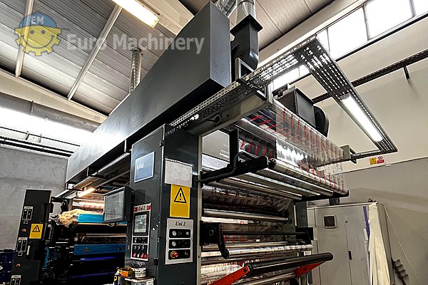 Steigern Sie Ihre Produktionslinie mit dieser gebrauchten 6-Farben-CI-Flexodruckmaschine – 1600 mm Druckbreite, 300 m/min, – bereit zum Bedrucken von PE, PP, OPP, PET und Papier. Inklusive motorisiertem Register, BST-Videosystem, Rakelkammern und mehr.