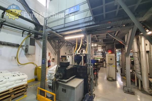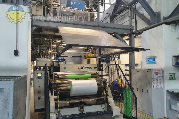 Reifenhäuser Kirion Monolayer-Extrusionsanlage für die Verarbeitung von PE. Einschichtextruder mit einem Schneckendurchmesser von 100 mm und einem Abzug von 1600 mm Breite. Typ: REIFENHÄUSER KIRION Zu verarbeitende Materialien: PE Typ: Monoschicht-Extruder Schneckendurchmesser: 100 mm Abheben:- Abheben 1600 mm breit