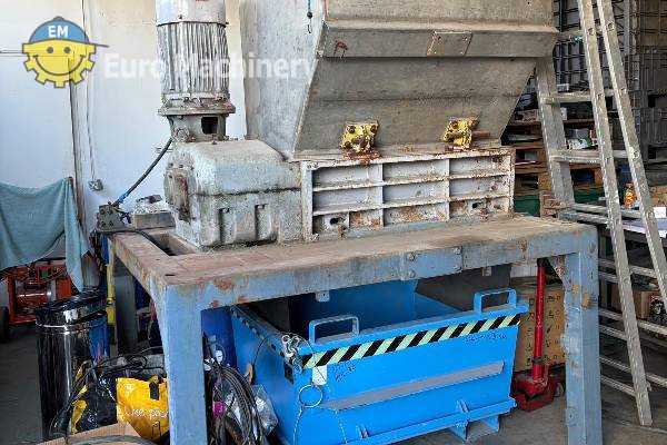 Satrind F1015 Zweiwellenzerkleinerer, der u.a. Kunststoffe, Holz, Papier und Karton, Leichtmetall, Industrie- und Elektronikabfälle verarbeiten kann. Industrielle Zerkleinerungsmaschine mit zwei Wellen, die große Materialien vor dem Recycling in kleinere Stücke zerkleinert. Marke & Modell: SATRINDF1015 – (15 HP) Typ:- Rotierende Schere