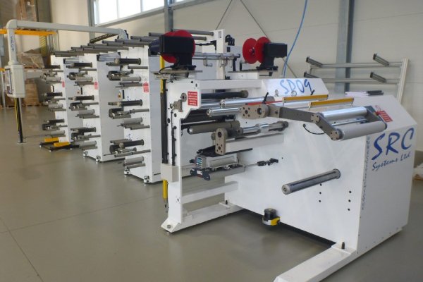 - 3 Aufwickelstationen und 3 zusätzliche Abwickelwellen an jedem Aufwickelgestell